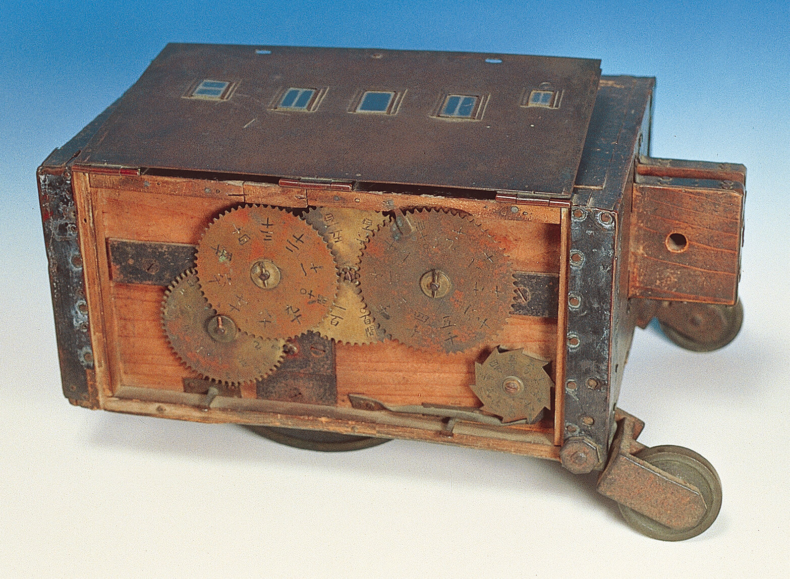 左写真:高杖先方位盤 / 千葉県香取市 伊能忠敬記念館所蔵 右写真:高量程車 / 千葉県香取市 伊能忠敬記念館所蔵