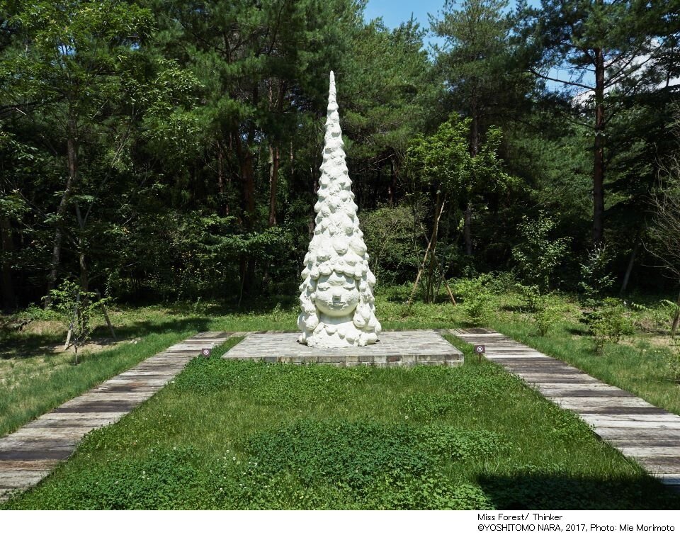 屋外には5mのブロンズ彫刻 《Miss Forest / Thinker》 が設置されています。