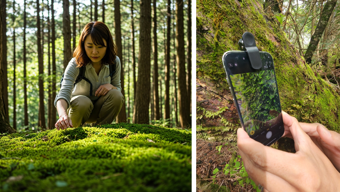 苔の胞子が光に透ける瞬間、雨粒を纏った苔が宝石のように輝く時間帯。そんな一瞬の美を切り取れるのは、この森ならでは。ルーペ、そしてカメラルーペを付けたスマホを手に、足元の宇宙を覗きに行きませんか?