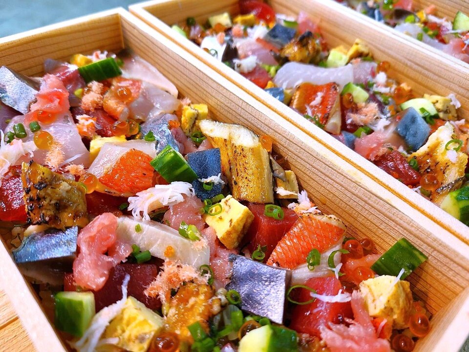 前田尚毅氏ご本人が厳選した天然地魚を、こだわりの赤酢のシャリに敷き詰めた宝石箱のような・特製「ばらちらし」
