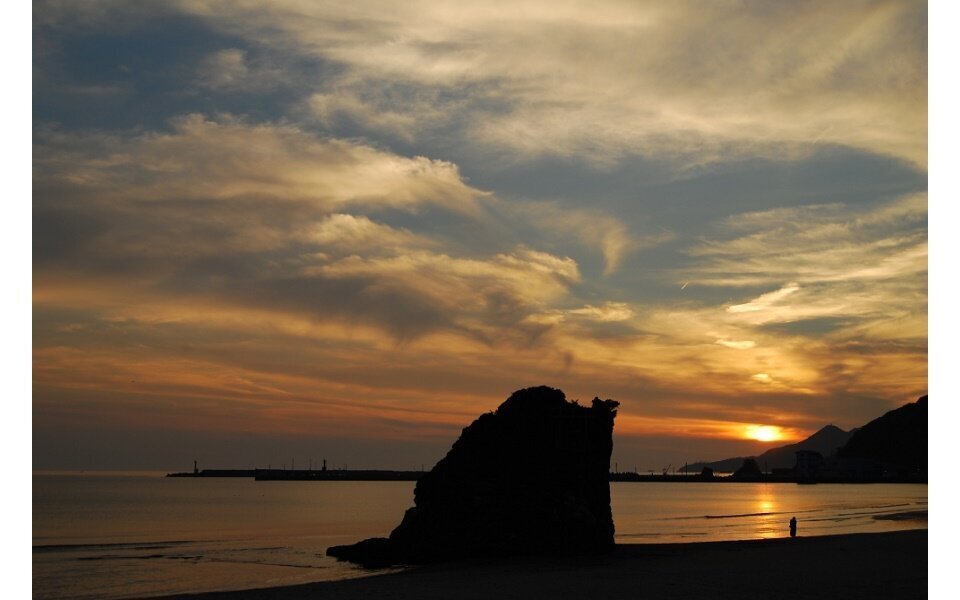 ※神迎祭の見学はいたしません。 白い砂浜と紺碧の海が美しい海岸は、日本の渚百選にも選ばれています。弁天島をシルエットに夕日が沈む風景は素晴らしく「聖地出雲」のシンボルとして日本遺産にも登録されています。