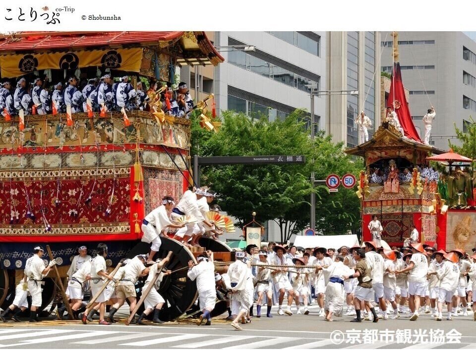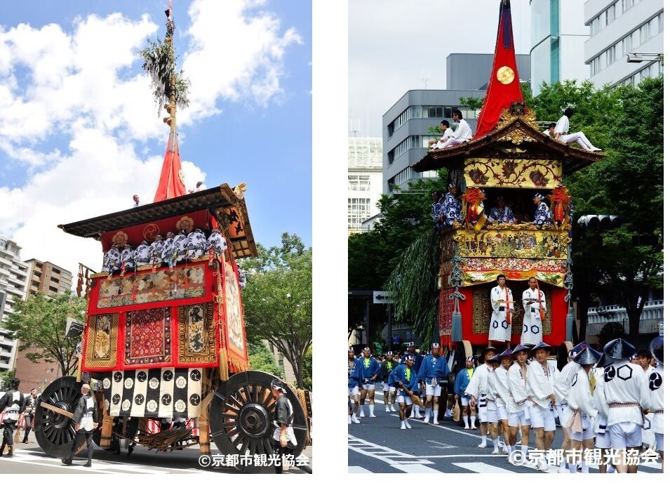 左:祇園祭山鉾巡行(前祭)函谷鉾(京都市観光協会貸出画像)右:祇園祭山鉾巡行(後祭)南観音山(南観音山貸出画像)