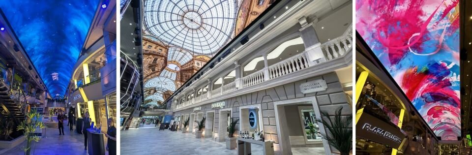 地中海の街並みをイメージしたガレリアでは、全長80mのLEDスカイドームに映し出される美しい映像や、華やかなイベントをお楽しみいただけます。