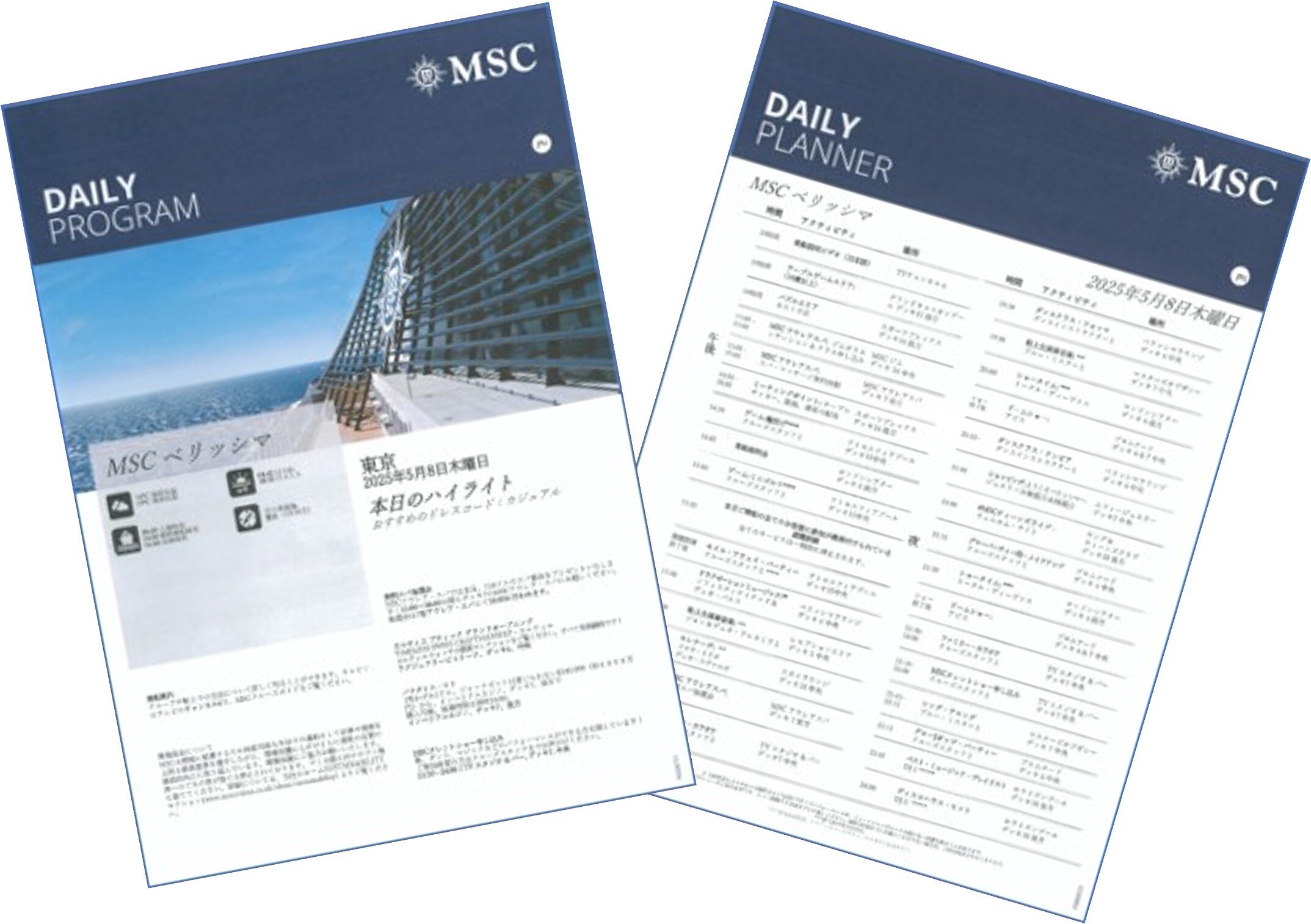 (船内での毎日のイベントやショーのスケジュールは、船内新聞にてご確認いただけます)