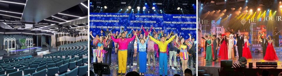 約1000名収容のブロードウェイスタイルの劇場では、あっと驚くマジックショーや、アクロバットショー、歌やダンスを中心とした華やかなミュージカルスタイルのショーなどが日替わりでお楽しみいただけます。