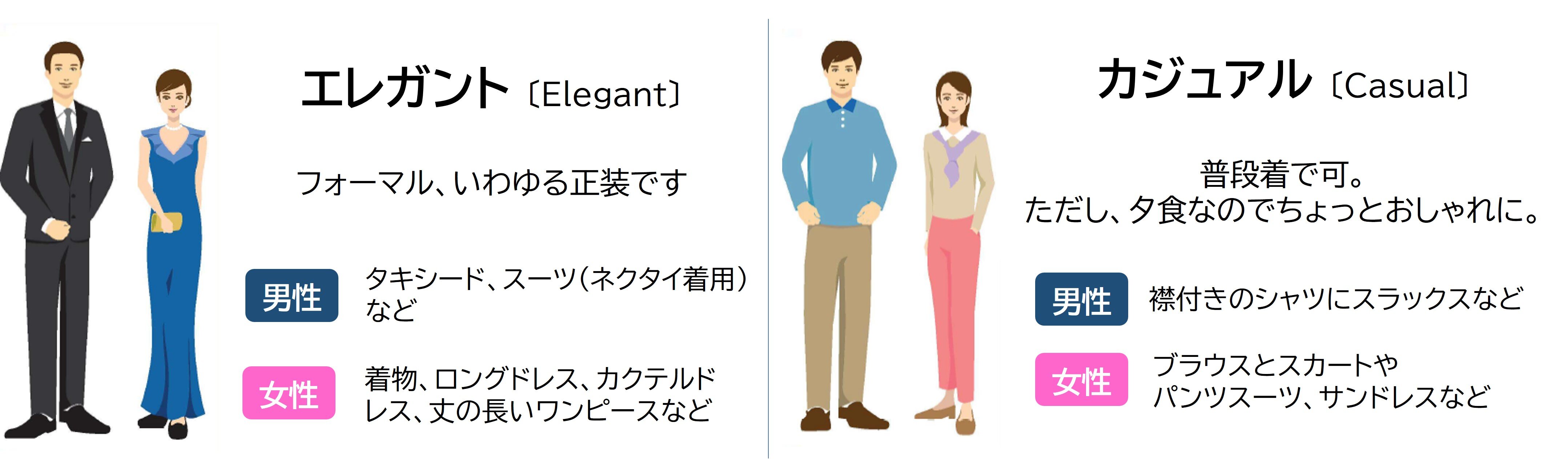 ドレスコードのご案内 (指定のおすすめドレスコードは船内新聞に記載されています)