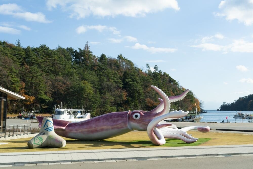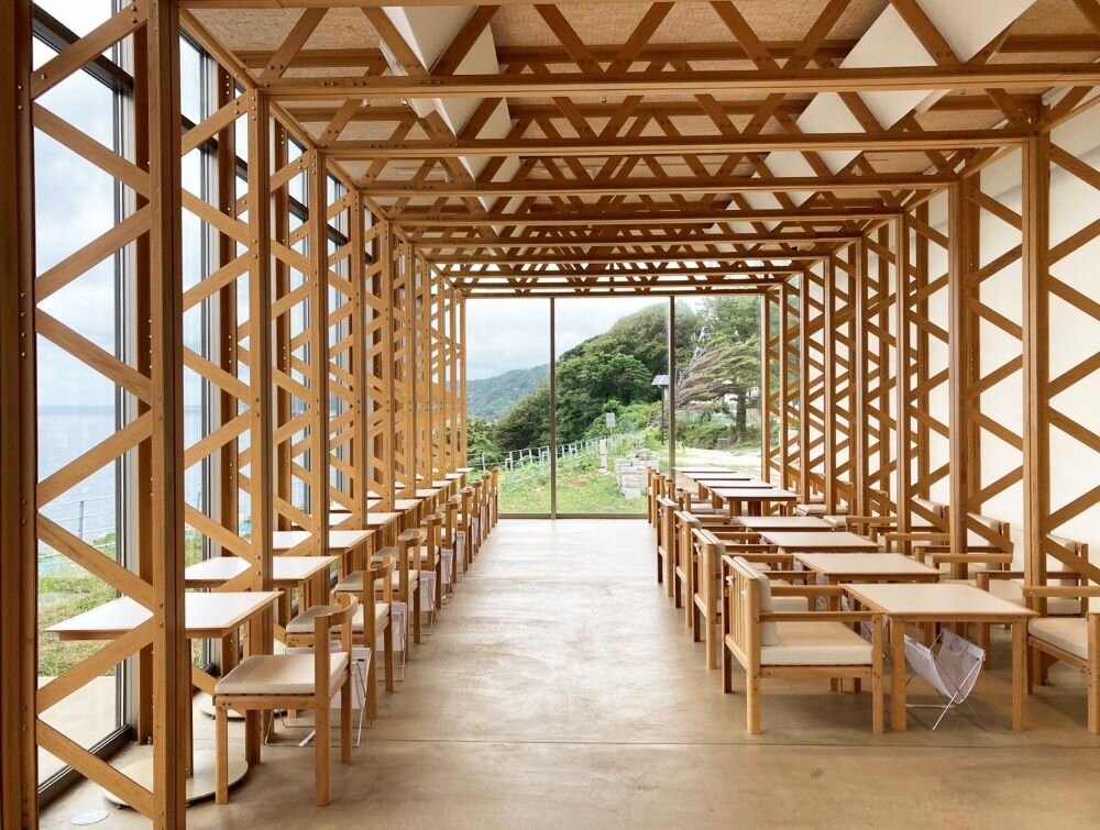 左上:イカの駅つくモール 左下:松波酒造の皆さま ©石川県観光連盟 右:潮騒レストラン(坂 茂氏設計) ランチイメージ