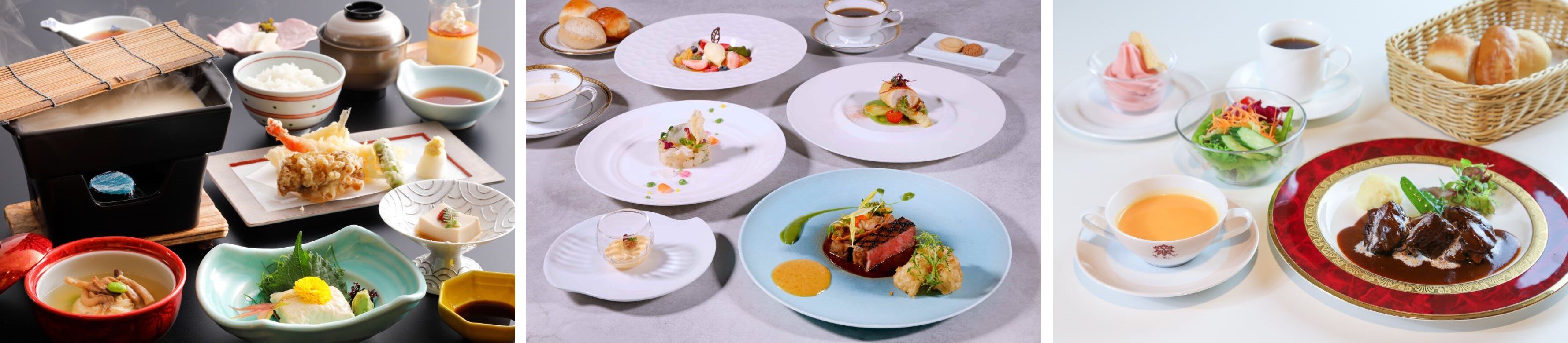左から、1日目昼食メニュー、1日目夕食メニュー、2日目昼食メニュー(全てイメージ)