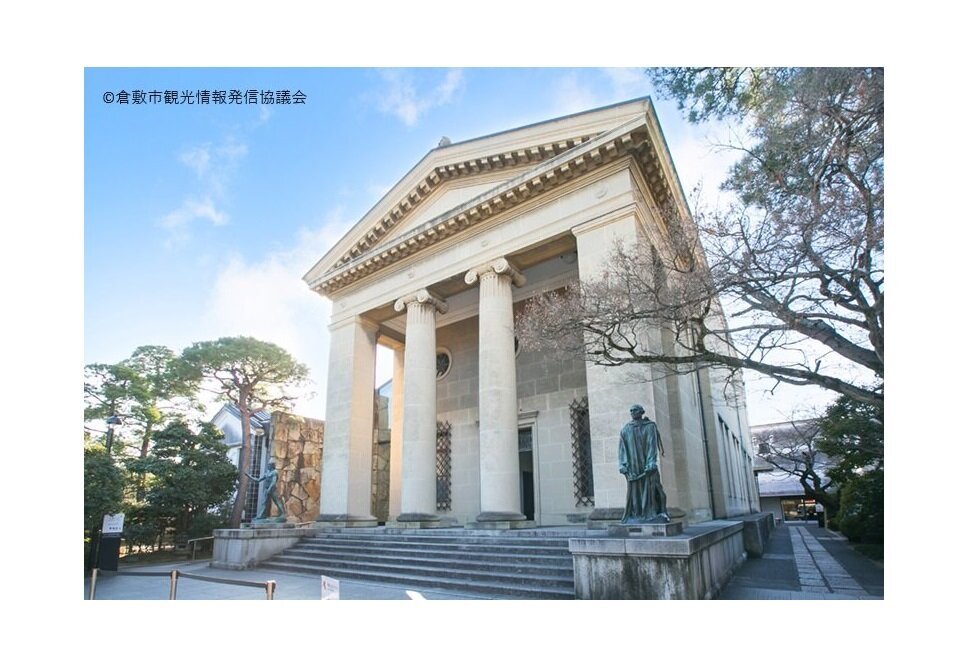 古代ギリシャ・ローマ神殿風の外観。設計は岡山県総社市出身の建築家である薬師寺主計(やくしじかずえ)。画像提供:公益財団法人大原芸術財団 大原美術館