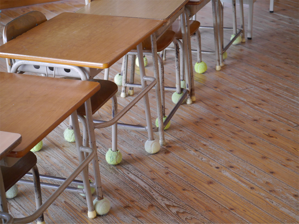 使用済みテニスボールを近隣小学校や自治体にお届けし、机や椅子の脚に取り付けて騒音緩和に役立てていただく「テニスボールの再利用」の取り組みを実施しています。
